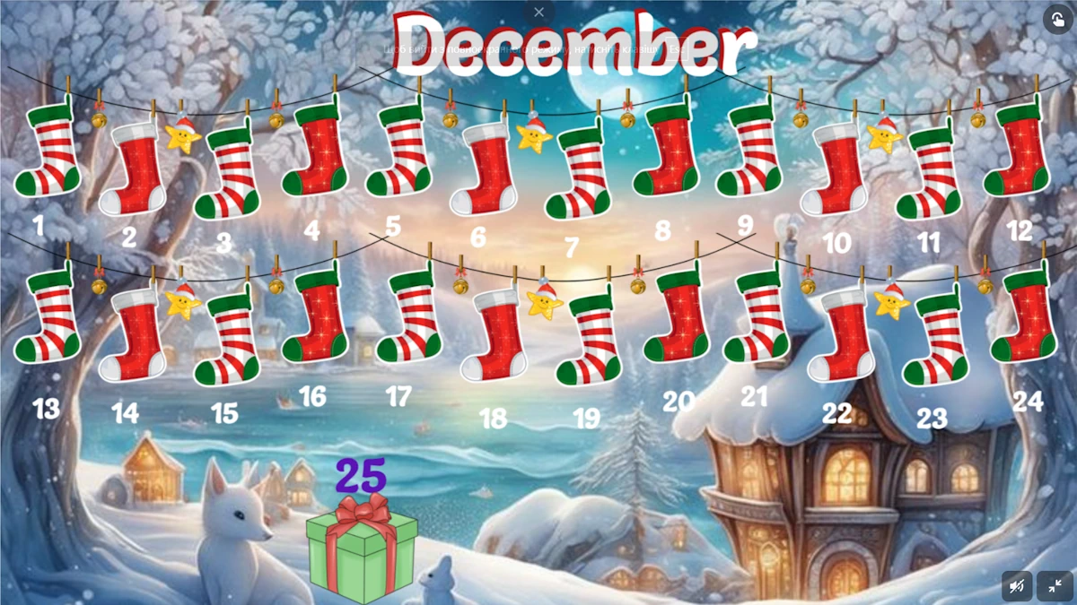 The game offers a conditional Advent calendar, where levels are opened gradually, one every day, starting from December 1. The last level will open on December 25. All levels are available forever. That is, even if you purchase the game in January, you will have access to all levels